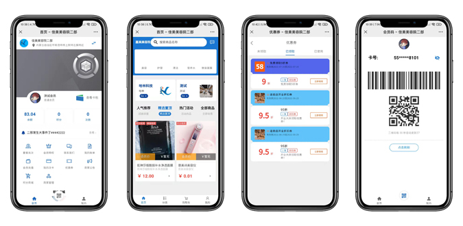 会员等级折扣、会员价、会员充值、会员积分、老会员拉新、微信会员等营销工具。
